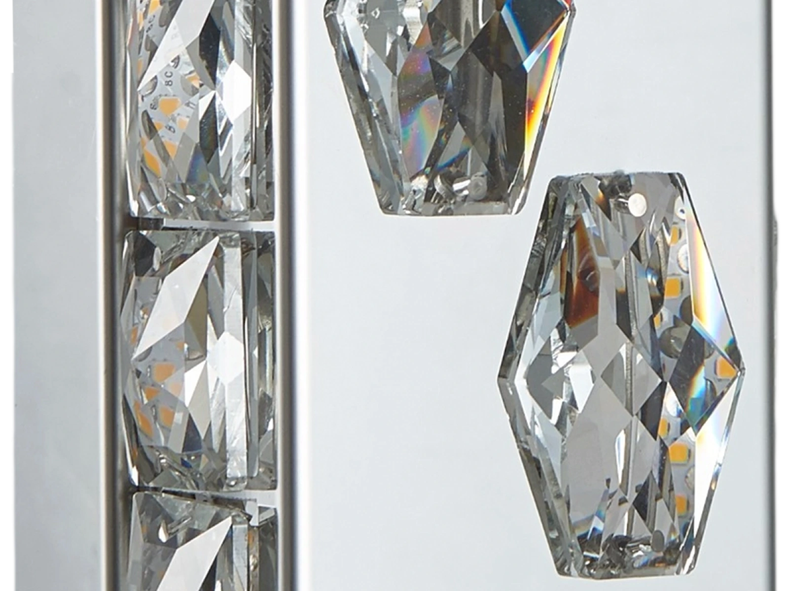 Svietidlo je vyrobené z vysokokvalitného nerezového kovu s chrómovou povrchovou úpravou, doplnené o precízne brúsené kryštály, ktoré umocňujú odraz a lom svetla. Použitá technológia spracovania zabezpečuje dlhodobú stabilitu materiálu a zachovanie jeho estetického vzhľadu.