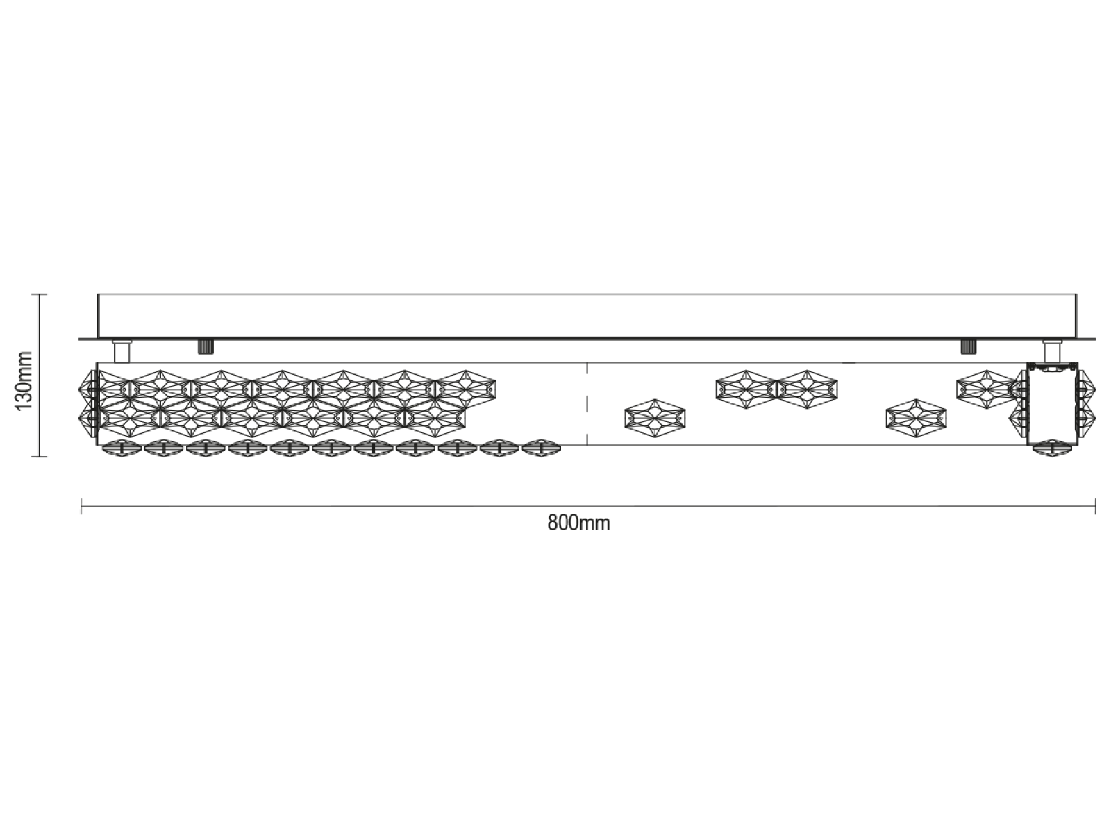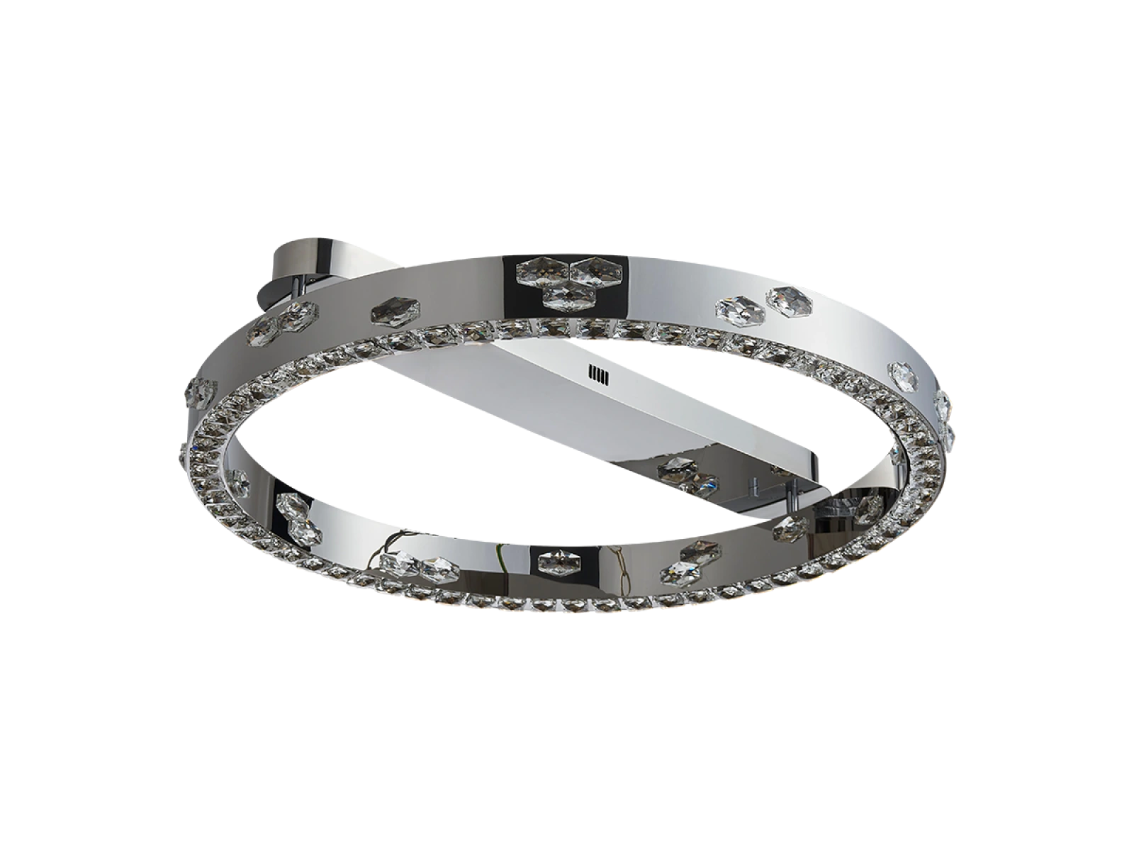 Svietidlo je vyrobené z vysokokvalitného nerezového kovu s chrómovou povrchovou úpravou, doplnené o precízne brúsené kryštály, ktoré umocňujú odraz a lom svetla. Použitá technológia spracovania zabezpečuje dlhodobú stabilitu materiálu a zachovanie jeho estetického vzhľadu.
