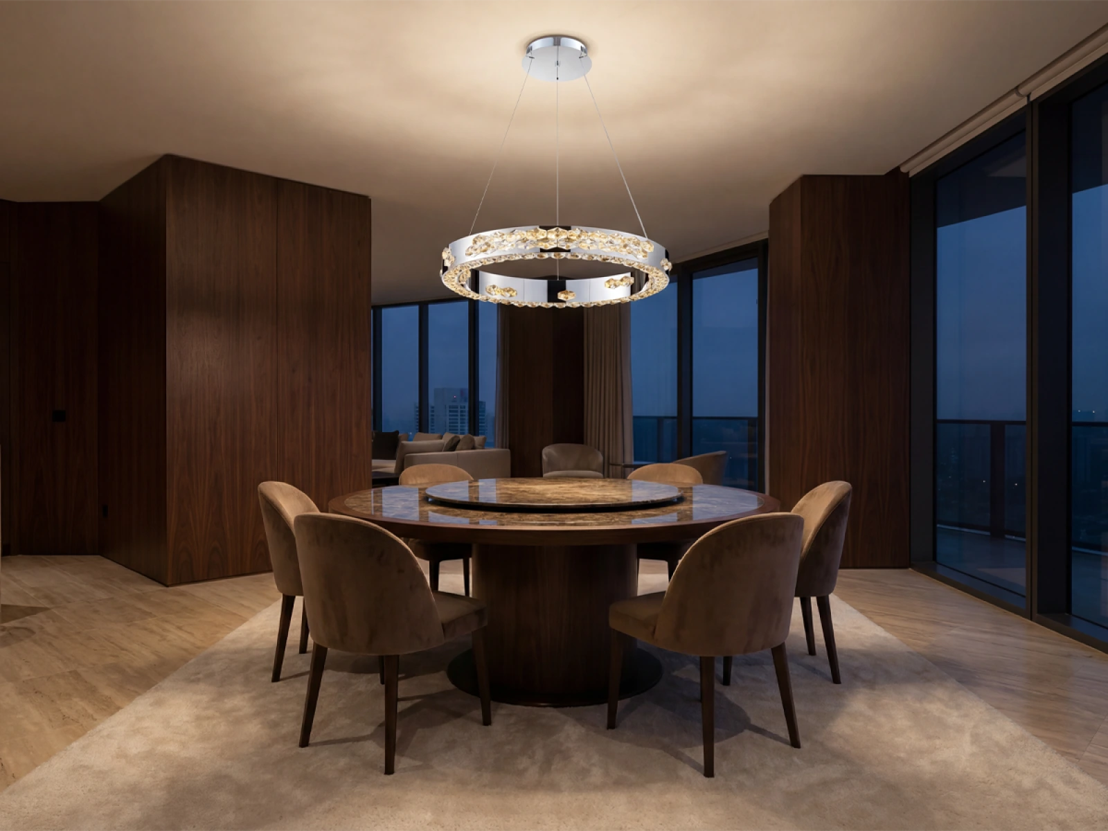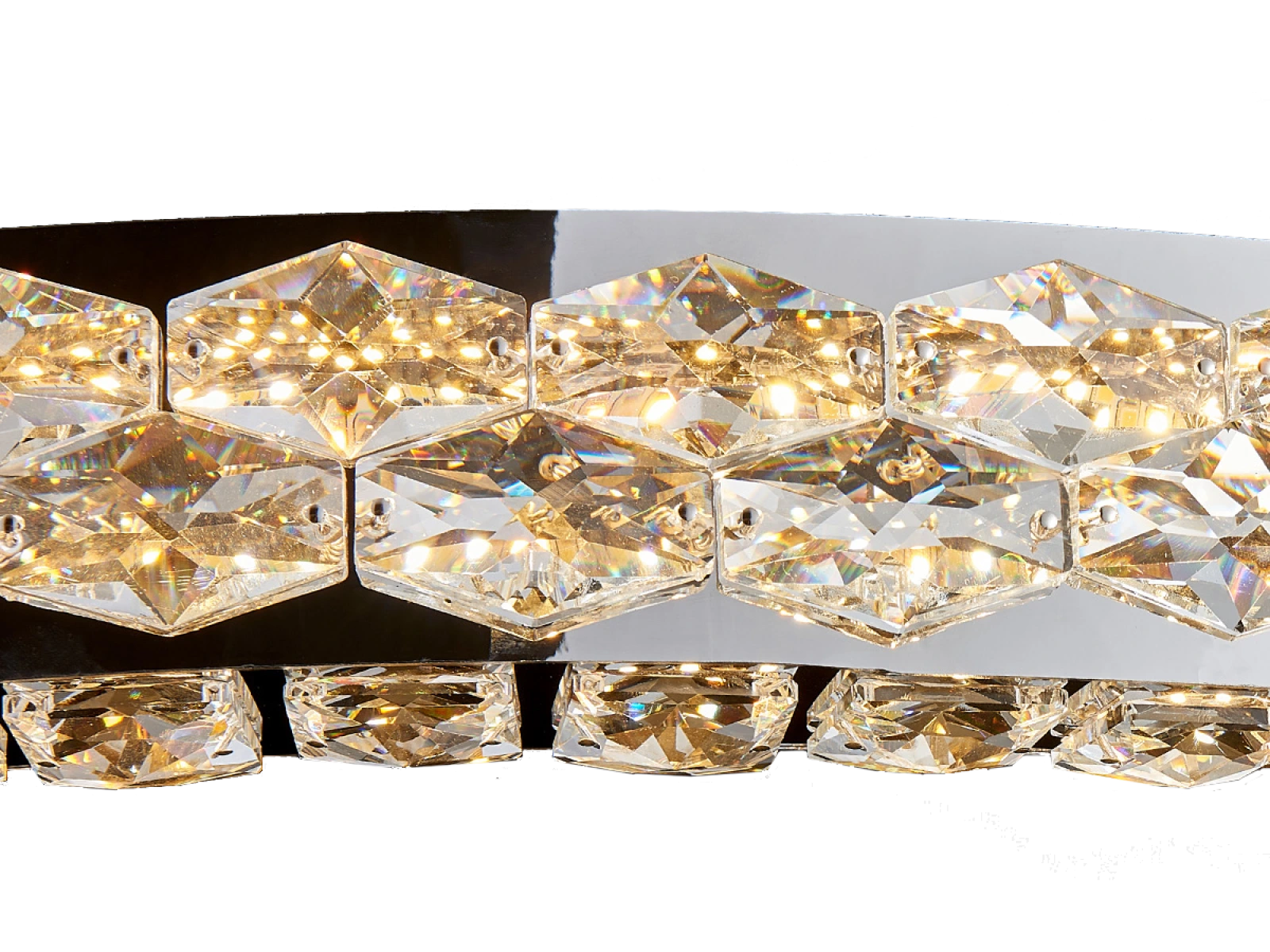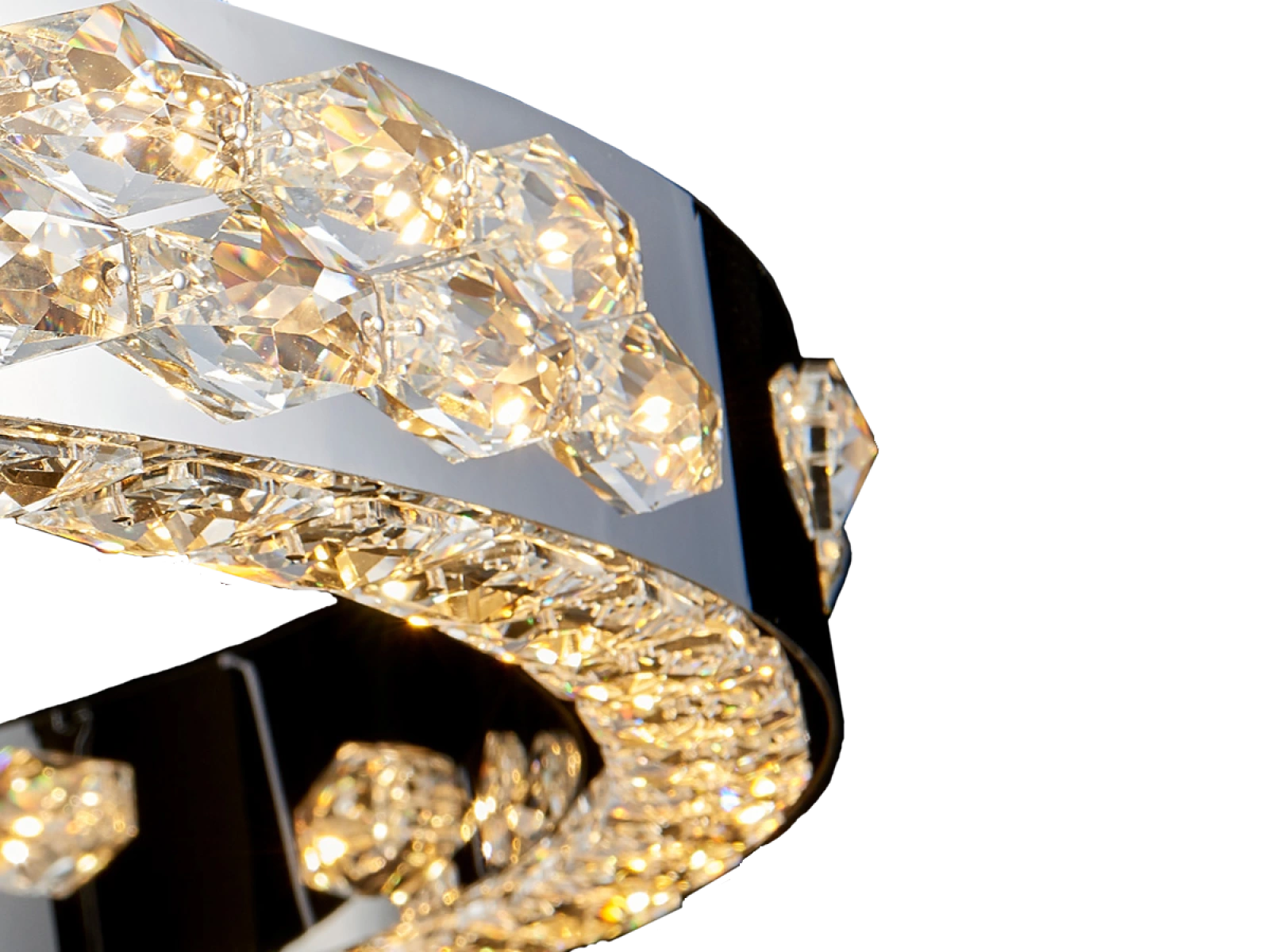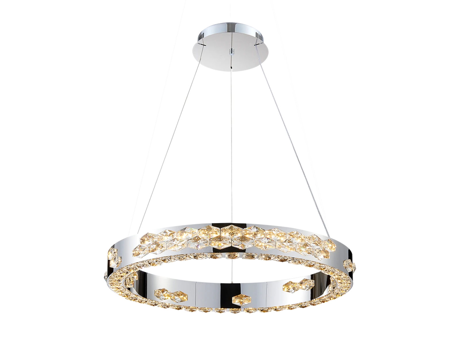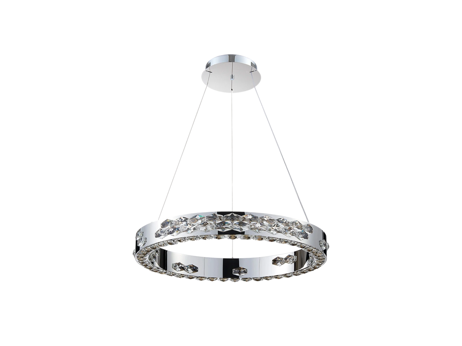 Svietidlo je vyrobené z vysokokvalitného nerezového kovu s chrómovou povrchovou úpravou, doplnené o precízne brúsené kryštály, ktoré umocňujú odraz a lom svetla. Použitá technológia spracovania zabezpečuje dlhodobú stabilitu materiálu a zachovanie jeho estetického vzhľadu.