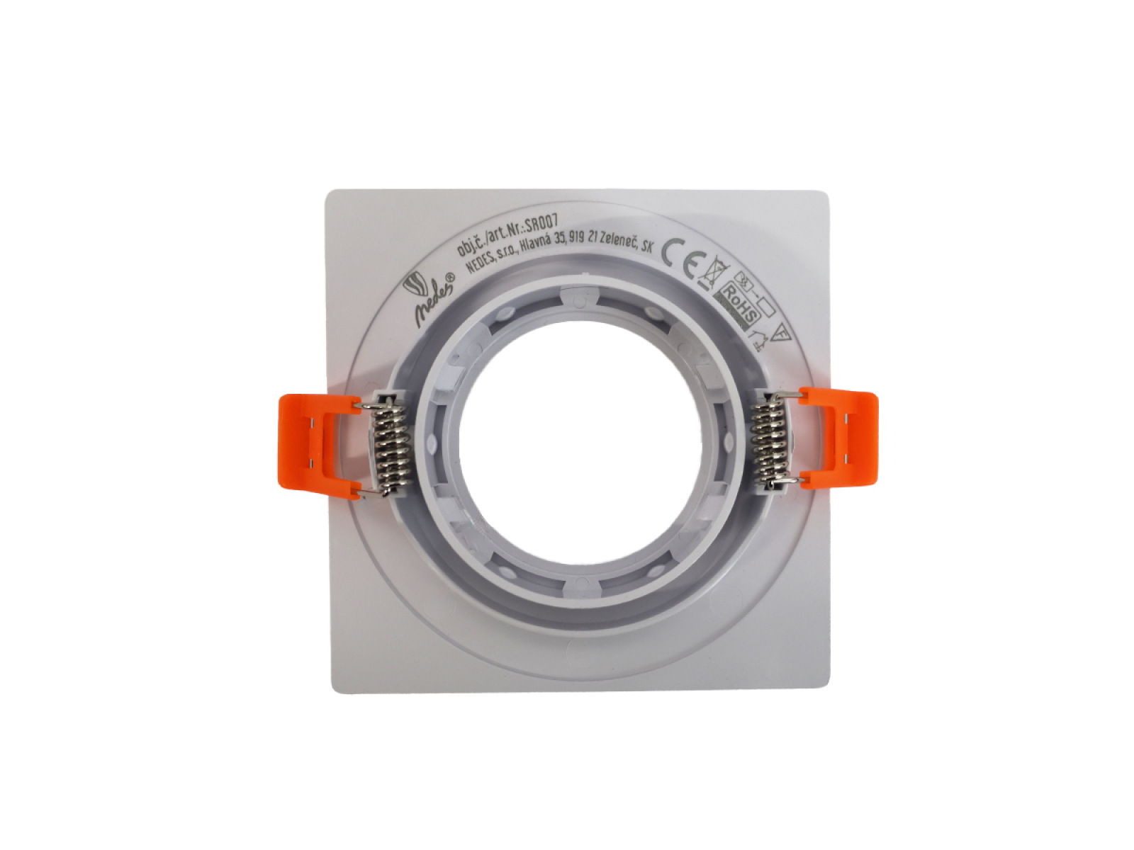 A tiltable square GU10 frame – model SR007 in white by NEDES offers a stylish and functional solution for interior spot lighting. It is compatible with GU10 base bulbs and, thanks to its adjustable tilt, allows precise direction of light as needed.