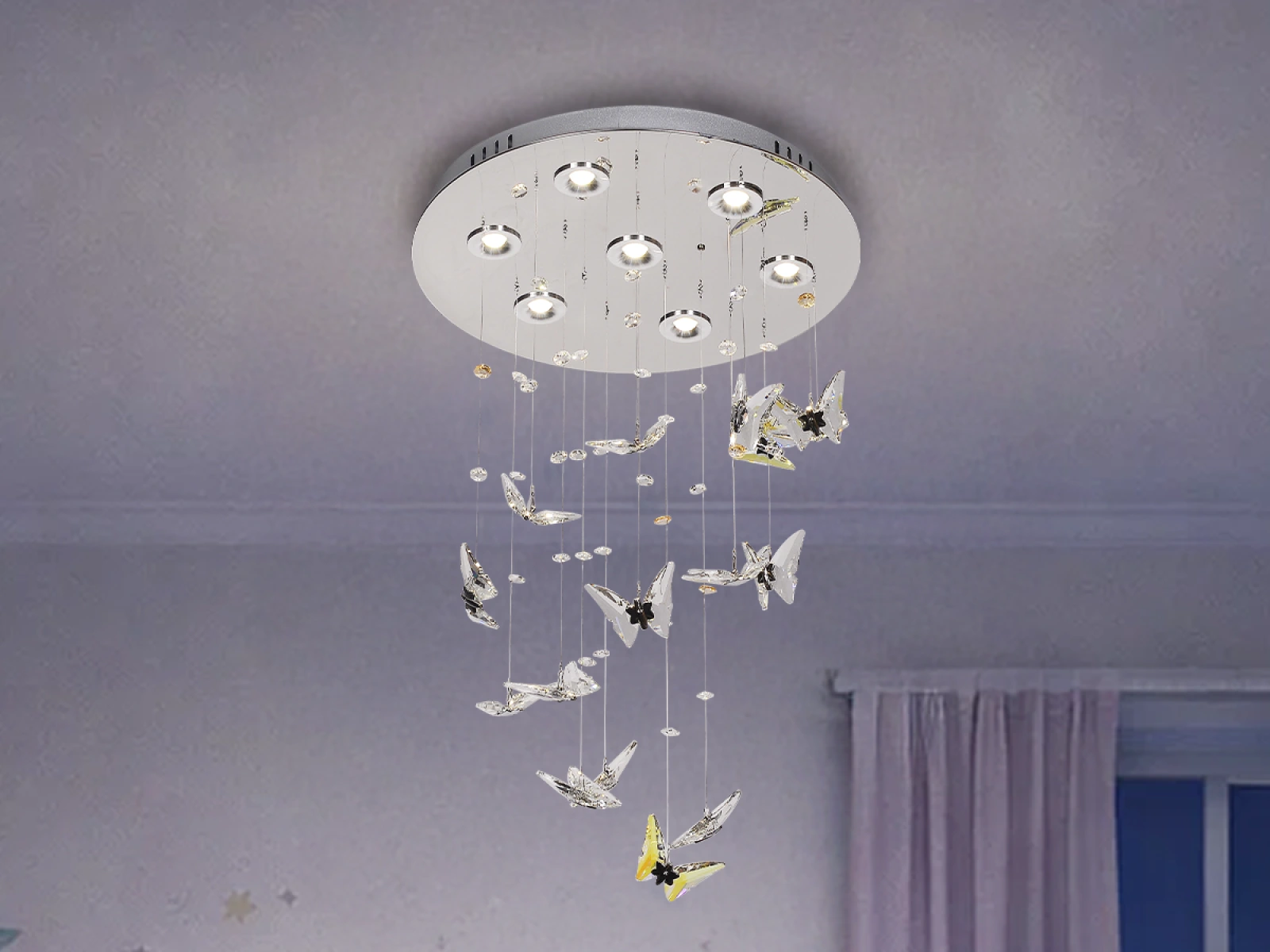 The chrome ceiling base ensures a modern appearance and stable installation. Thanks to LED technology, it provides energy-efficient and reliable lighting suitable for everyday use. The luminaire is ideal for children’s rooms, bedrooms, or as a design accent in modern interiors.