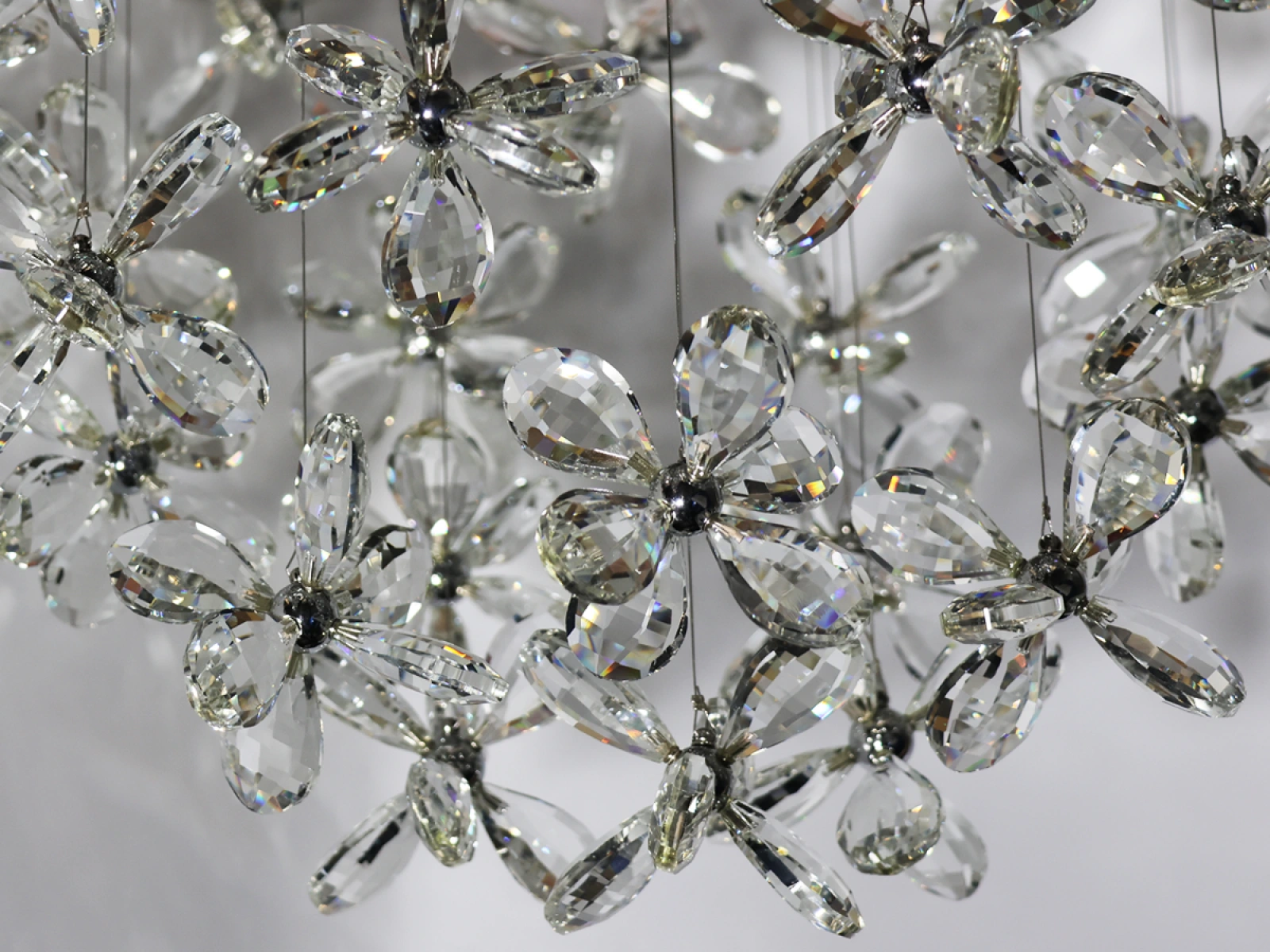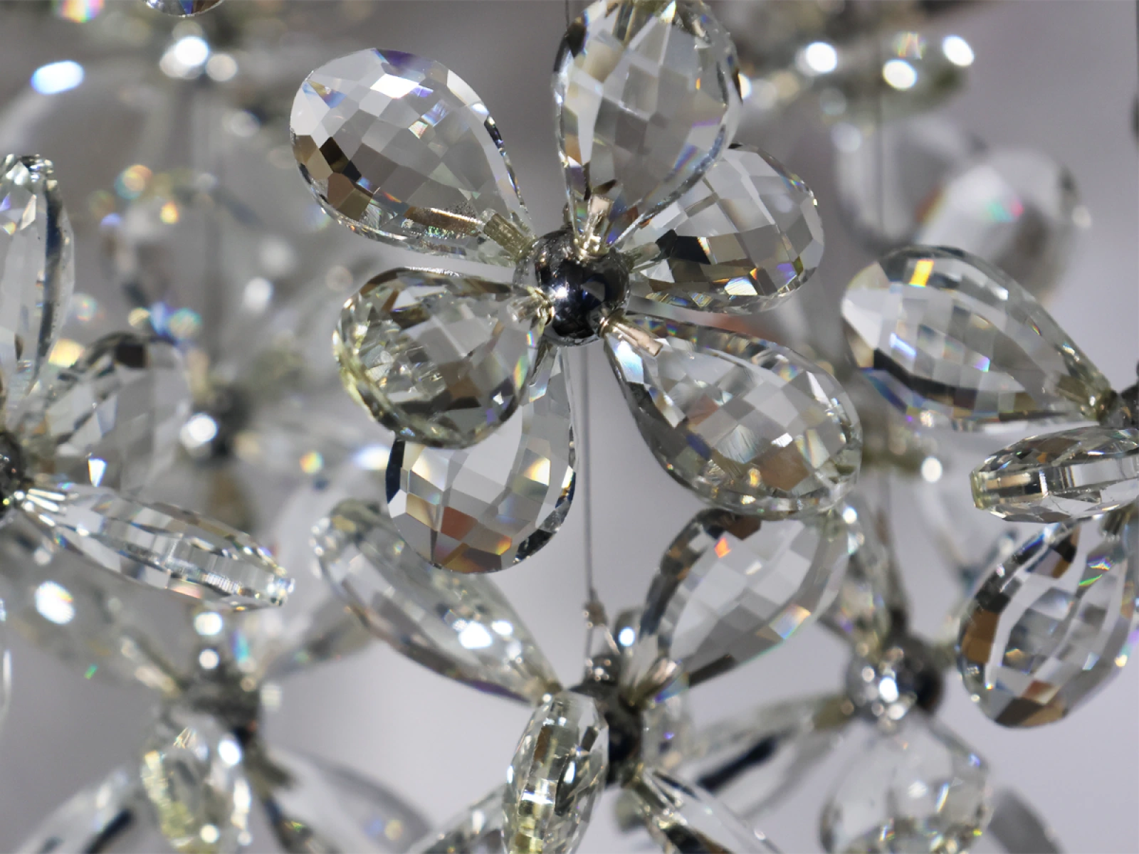 The LED luminaire with decorative crystals by NEDES has a light and elegant appearance. Light passing through the cut crystal elements creates a pleasant atmosphere and a subtle sparkle in the interior.